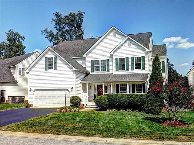 Move-in-ready gem in The Grove! Ideally located in the heart of Midlothian, walking distance to pool, parks, library, YMCA and elementary school; just minutes to interstates, great restaurants & shopping (Wegmans is here & Burger Bach coming soon!). You'll love this kitchen update: granite countertops, tile backsplash, undermount sink with goose-neck faucet & updated lighting. Sunny breakfast area nestled in the bay window, and beautiful dining room with butler's pantry is just off the kitchen. Family room is open to the kitchen & additional room makes a perfect formal living room or office. Great upgrades throughout, like hardwood flooring on the main level, crown molding & chair rail, tray ceiling, and fresh paint almost everywhere. Bedrooms upstairs are truly spacious, with space for queen-sized beds in each. The master suite includes a room-sized walk-in closet; spacious bath with dual-sink vanity, jetted tub, and separate shower. Finished third floor, too! Plenty of room for games, media & hobbies. Welcoming front porch greets your guests & lovely entertaining deck overlooks the fenced backyard. Come take a look!