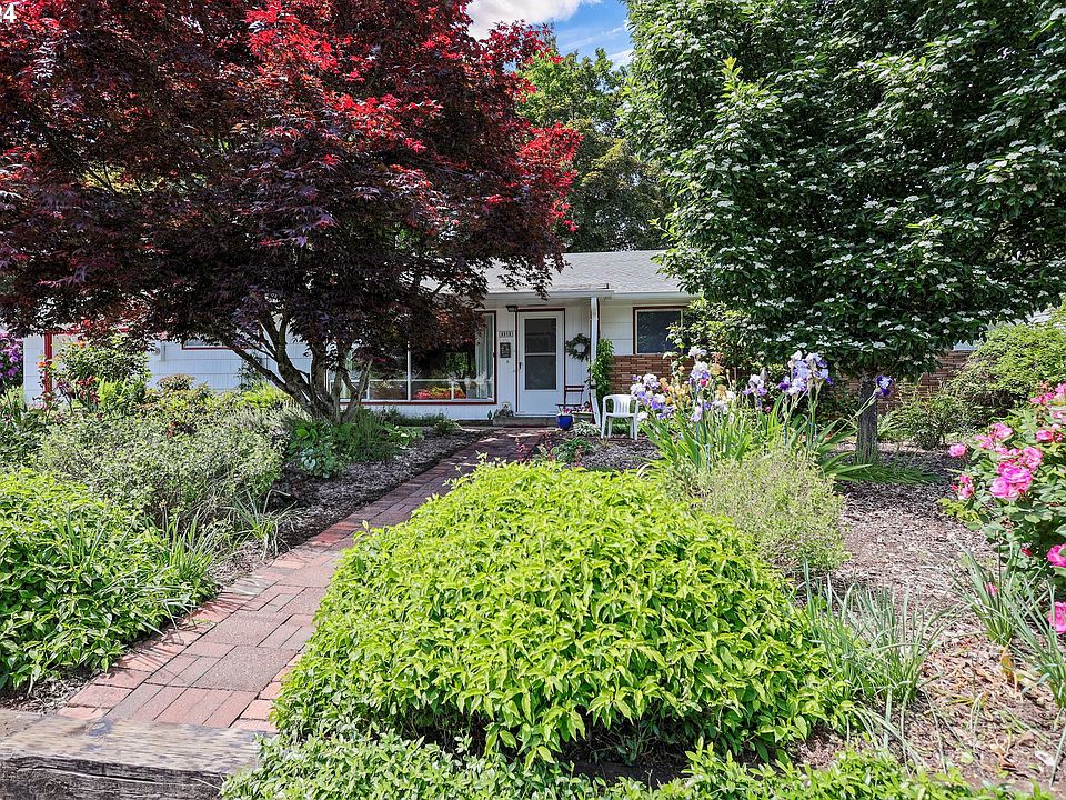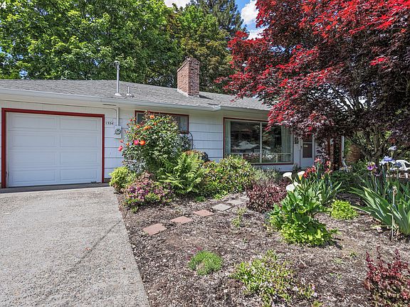 This home is well maintained and features living room with pellet stove, den/family room, dining room with slider to back yard, recently remodeled kitchen, large primary bedroom with 1/2 bath and access to back yard, remodeled bath with walk in shower, utility room with sink, one car garage that is extra deep with storage and a custom covered patio. House has been replumbed. The home sits on .53 of an acre in town close to schools and shopping and the private back yard features a variety of fruit trees, berry bushes, roses and a number of flowering plants along with raised, irrigated beds for your vegetable garden. The yard is fully fenced and both front and back yard have a sprinkler system.