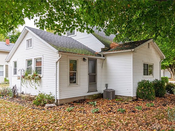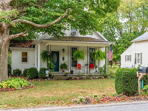 This charming home invites you to relax and enjoy its peaceful setting, whether it's from the covered front porch overlooking vibrant, colorful flowerbeds or in the private backyard, where you can take in gorgeous sunsets each evening. Situated on a spacious .75-acre lot just north of Urbana, in the West Liberty School District, this property combines country living with the convenience of being close to town for shopping, dining, and everyday needs. Inside, the home offers nearly 1,200 square feet of updated living space across two floors, featuring 3 bedrooms and 1 full bath. Step into the large foyer that leads into an oversized living room with gleaming hardwood flooring, perfect for both family gatherings and quiet evenings at home. The kitchen is warm and inviting with white cabinetry, a decorative backsplash, and abundant counter space. A wall of windows at the back of the kitchen frames a stunning view of the backyard and nightly sunsets. All kitchen appliances convey, including the range, side-by-side refrigerator, microwave, and dishwasher, making it move-in ready. Convenience continues with a main-level laundry room, where the front-loading washer and dryer stay with the home. The main level also includes a cozy carpeted bedroom and a full bath featuring a decorative double-sink vanity and a whirlpool tub, perfect for relaxing at the end of the day. Upstairs, you'll find a loft style bedroom at the top of the stairs, which flows into a third bedroom, providing flexible space for guests, a home office, or a playroom. The full basement offers ample storage, while outside you'll find even more to appreciate. A two-car detached garage, with plenty of additional off-street parking, and also the property includes a 16x22 outbuilding that, with a little repair, could be ideal for storing lawn equipment, mowers, or even a workshop. This property truly has a lot to offer and is move-in ready, combining modern updates with the charm of a country setting.