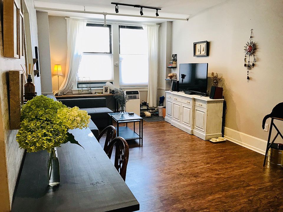 All utilities including internet included in rent. One cat or small dog allowed with owner approval - no monthly pet fee. On street kiosk parking and convenient parking garage across street.