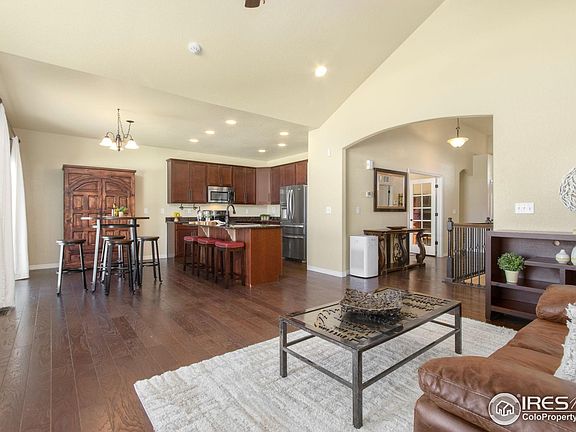 This beautifully maintained, one-owner ranch sits in a prime Berthoud location with open space and mountain views right out your back door. The sellers have already taken care of the big updates for you - new class 4 roof, fresh exterior paint, updated landscaping, and new appliances mean you can move in with peace of mind.The home is set on a generous south-facing lot with a full privacy fence, lush lawn, and upgraded concrete wraparound patio and sidewalk. An oversized 3 car garage w/shelving offers plenty of space for vehicles & storage. Inside, the open floor plan is filled with natural light from large windows & vaulted ceiling - highlighting the timeless finishes. The kitchen features rich wood cabinetry, granite counters, eat in table space, a large island w/ seating, a walk-in pantry, and new stainless appliances. The living room has vaulted ceilings and a centerpiece fireplace, creating a warm and inviting gathering space.The private main floor Primary suite is a retreat of its own with a double-sided fireplace, soaking tub, dual granite vanity, spacious walk-in closet, and separate smooth stone tiled shower. A 2nd bedroom w/walk in closet & full tub shower bath; plus a flexible room that can serve as an office or bedroom, round out the main level. The laundry/mudroom with entry from the OS garage, adds to your main floor convenience. Downstairs, the finished basement nearly doubles your living space w/ 2 additional bedrooms, a full bath, and two oversized rec/living areas. Plenty of natural light and storage make the lower level highly functional. The community of Berthoud continues to grow while maintaining its small-town charm. This home is just minutes from the heart of downtown with local shops and restaurants with easy access to Longmont, Boulder, and Fort Collins; hiking and biking trails, and nearby bustling parks & community areas.
