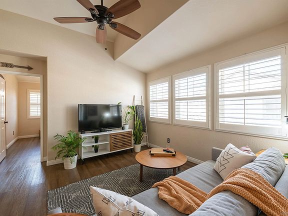 Welcome Home to your 2 Bedroom, 2 Bath Condo located in the beautiful Sycamore Ridge gated community. This gem offers an open concept floor plan, soaring vaulted ceilings, tons of natural lighting, attached 1 car garage and private balcony. Marvel at the beautiful upgrades including wood laminate flooring, plantation shutters, modern ceiling fans and newer oil bronze fixtures throughout. The gorgeous kitchen boasts quartz counters, stainless steel appliances, deep single basin sink and tiled backsplash. Enjoy the resort quality amenities including pool, spa, fitness center, playground & park, sport courts and recreation center.