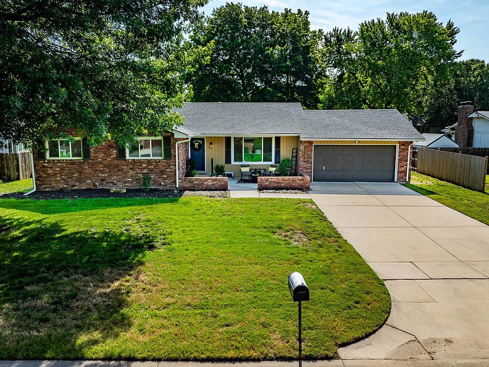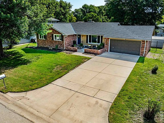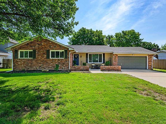 Sunny spaces and serious charm. This all brick ranch in a beautiful established west Wichita neighborhood offers 3 bedrooms, 2 bathrooms, and an attached 2 car garage. A brand new roof was installed in April 2025, providing peace of mind for years to come. Step inside to find fresh paint and luxury vinyl flooring throughout the hearth room, kitchen, and living room. The spacious hearth room, currently used as a dining area, offers flexible space for entertaining. The galley kitchen features generous counter space and a step in pantry, perfect for everyday cooking or entertaining. Just off the kitchen and hearth room is a sunroom, offering additional living space filled with natural light. It’s the perfect spot for morning coffee, evening relaxation, or even your favorite houseplants. Main floor laundry is conveniently located near the primary ensuite. The finished basement includes a large rec room, non conforming bedroom and a dedicated storage area. Step outside to a fenced backyard just over a quarter acre, complete with two storage sheds. This home combines comfort, function, and a touch of personality. Don’t miss the chance to make it yours.