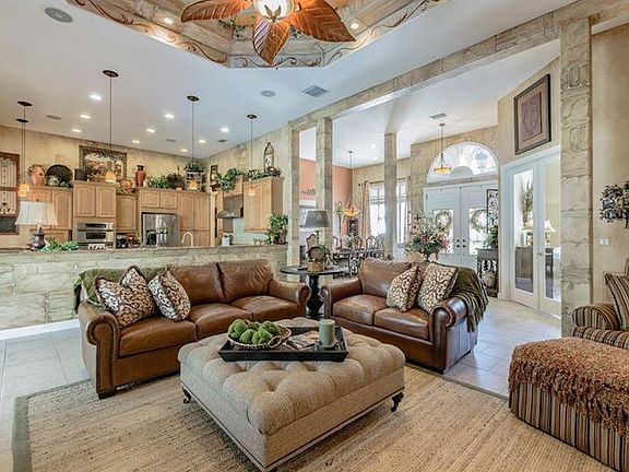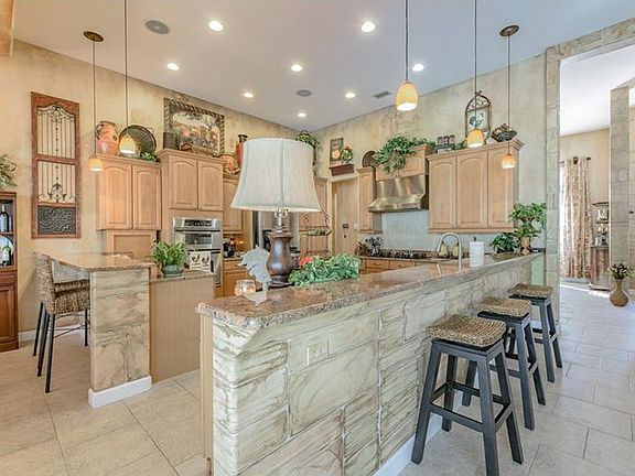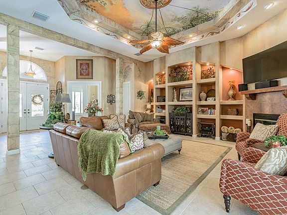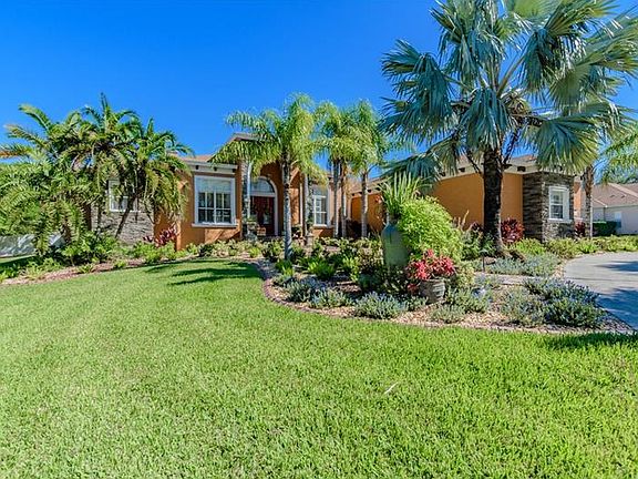 Come see this spectacular estate home on private 1+ acre lot in gated community. Enjoy the serenity of this peaceful country like setting, while being close to business centers, shopping, golf courses and beaches. A circular drive, paver walk, meticulous landscaping and lighting welcome you. New stone accent on the exterior. Enter thru double leaded glass doors to a welcoming foyer. This home features a large Living/Great Room that has custom tray ceiling, built-in nooks, and a propane fireplace. The gourmet kitchen features gorgeous cabinets with granite countertops, island with prep sink, stainless appliances, gas stove, convection wall oven, walk in pantry and a bay windowed eating area. Next to the kitchen, there is a beautiful Dining Room perfect for entertaining and/or family gatherings. Large Den with closet and plantation shutters. Huge Master Suite has Sitting Area, artistic custom tray ceiling, huge walk in closet & secluded patio. Luxurious Master Bath with double sinks, large jetted tub & walk in shower w/ dual shower heads. The other 2 bedrooms are both good sized, each with adjacent full bathrooms. The back outdoor area is built for outside entertaining. It features a large saltwater pool with a spill over spa. A new Salt Generator and Jacuzzi heater were recently installed. There is a fully equipped outdoor kitchen with plenty of space for lounging. The backyard is huge. Newly installed vinyl fencing and commercial landscaping(front & back). Come see this unique luxury property!