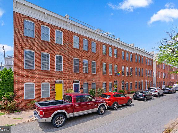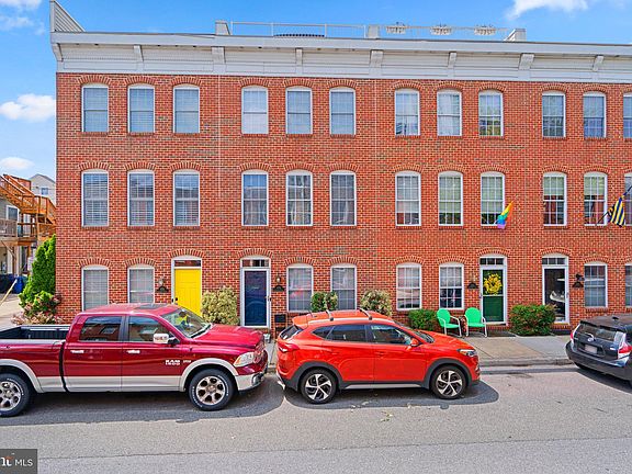 This Modern, 3 Bedroom, 3.5 Bath, Brick-front Townhouse in the highly desirable neighborhood of Locust Point! Classic Baltimore style rooftop deck model with a 3 level generous open floor plan flooded with natural light, plus 2 car garage for off street parking and direct private access into the home. The Entry Level features two Built-In Arrival Stations, a 3rd Bedroom with French Doors & Full Bath ensuite, and a huge Family Room with recessed lights, Access to the Rear 2 Car Garage, utility closet & a Laundry area with Recently replaced LG Washer & Dryer. The Main Level features the Kitchen with warm maple wood cabinetry, Stainless-Steel appliances, Gas cooking Granite Countertops, recessed lights & double sink. Elegant Living Room with gas fireplace, mantel and spotlights. Dining Room with chair railing, decorative chandelier and mirror. Hardwood Flooring throughout the Main & Bedroom Levels. Spacious Primary Bedroom has a tray ceiling, ceiling fan, deep wall closet, En suite bathroom with large soaking tub, separate shower. The second Upper-Level Bedroom has an attached bathroom with tile flooring, and tub-shower combination, this Full Bath also opens to the Hall. Continue up the stairs to the expansive rooftop deck running the entire length of the home, perfect for entertaining and enjoying the spectacular views of Locust Point. Plus, there are No HOA or Ground Rent fees! This friendly neighborhood is within walking distance to one of the best public schools in Baltimore. Enjoy a walk to Latrobe Park and Fort McHenry or Water Taxi to Fells Point and Canton. This Gorgeous Home has easy access to commuter routes including 1-95 and is conveniently located near Restaurants, Shops, Parks, and Spas. Conveniently, Walk down the street to Doggie Day Care. City Living at its finest in one of the most sought-after neighborhoods in Baltimore -Locust Point!
