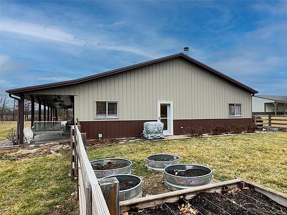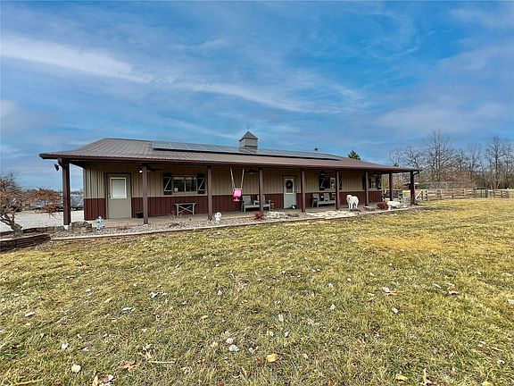Special six-acre Shangrila boasting custom home, fenced pasture areas, lake, custom outbuilding/chicken coup and 40' storage container. House features premium vynil plank flooring flowing from updated kitchen through dining area across vast living/family room and down the mile-long hallway to the bedrooms. Kitchen refreshed with new sink and countertops and refurbished cabinets. Brilliantly and naturally lit. Open and flowing floor plan makes this the place to be for family gatherings and entertaining. Other noteworthy amenities and mentionables include large closet type pantry, stainless applicances, Solar augmented electric service, plastered wall and ceiling finishes, ceiling fans galore, additional well water source for livestock, 80' covered porch, and stockade-fenced, backyard garden/play area. Listing agent is kin to sellers. Buyer should verify all MARIS MLS info/data as it is not warranted as accurate.
