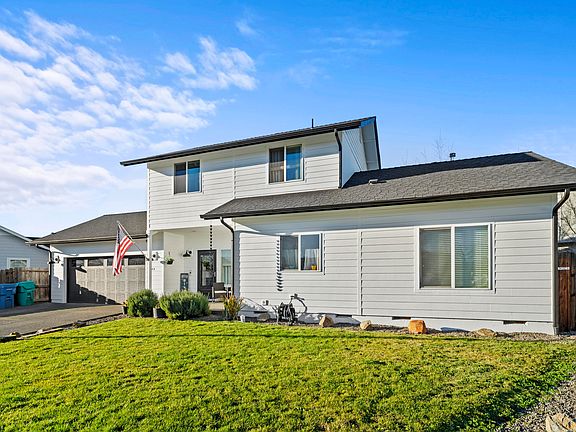 Nestled in a quiet Grants Pass cul-de-sac, this home has everything you need! Boasting 1,533 Sq Ft, vaulted ceilings, and tons of natural light, this home is spacious and comfortable. Freshly painted in 2021 and new flooring in 2021 make this home turn-key. The kitchen is fully equipped with a breakfast bar, lots of storage, and appliances from 2021 and newer. Lighting is all updated with dimmer switches. The primary bedroom, located on the main floor, is bright and generously sized with a large closet and ensuite bathroom. Two bedrooms upstairs are perfect for a growing family, office space, or guests and offer privacy for the master suite downstairs. Outside, you will find a low maintenance (w/plenty of room for kids/pets) and clean backyard with a garden bed, a front and back sprinkler system with a control box. And if you're in need of extra space, the garage contains large overhead storage. Don't miss your chance to call this lovely house your home, schedule a tour today!