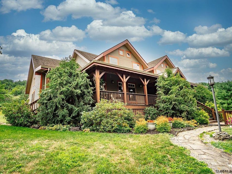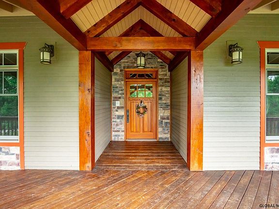 Relax in luxury in this custom built timber frame home. Sitting on your covered porch or screened 3 season room, you can take in the views of your gardens or mountains! Inside, no expense was spared to create a show stopping home that is an entertainer's dream. The kitchen is the heart of the home w/ Brazilian granite, wine fridge, double oven, 6 burner stove, 2 islands, butler pantry, & cherry custom cabinetry. Stunning details are found in the marble, slate foyer, focal wood fireplace, handmade moldings, and red birch floors milled from a VT church. Upstairs can be kept as an open space or easily framed off to create beautifully defined rooms. Your basement has a bar and plenty of space to create a game room & lounge! The barn is wired, plumbed, & framed to accommodate a caretaker home!