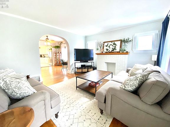 CHARACTER, UPDATED, MUST SEE! You will not want to miss out on this 3 bedroom home that looks like a magazine... Living Room features a fireplace (current seller never used), beautiful hardwood floors, great sunlight. Dining area is between the kitchen and living-room and it makes a great place to entertain. This kitchen is a dream one -- granite countertops, ample cabinet space, ceramic tile floors, stainless steel appliance package, undermount stainless steel sink, and a pop of color from the glass subway tile backsplash. Updated bathroom with a newer vanity and a bath tub. Three spacious bedrooms with hardwood floors. Oversized concrete patio to enjoy. 1.5 car detached garage. Basement is spacious and can be used for extra living space, if needed, great place for extra storage, and laundry. Don't miss out, this will go quickly. (Dates, sqft, room sizes, are approx.)