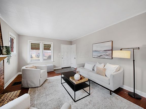PHOTOS 3/2 We promise this property will make you smile for so many reasons...FIRST: The enclosed front porch offers a comfortable perch for sipping coffee or getting lost in a good book. SECOND: The antique leaded glass windows that flank the fireplace are full of character. THIRD: Enjoy the hardwoods that have been carefully preserved. FOURTH: Overlook your very own yard while entertaining on the rear patio. Garage w opener has an attached shed for for tinkering, gardening, etc. Great space available in the freshly sealed basement; washer dryer stay. Carefully pull down the attic stairs to see bonus space galore! Karns & Deshler parks nearby. 10 minutes to Downtown or Bexley, 15 to OSU and Airport. FAVORITE LOCAL HANGOUT: EIGHT & SAND TAVERN & REFUGE