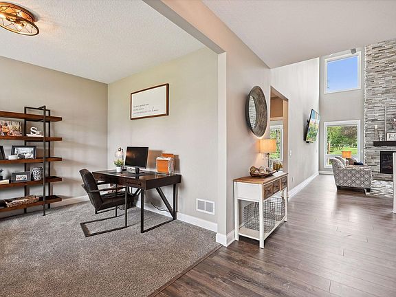 Creative Homes two story in coveted Pineview Meadows, complete with a community pool! Chic interior filled with upgrades and an open concept floorplan; fabulous kitchen with stainless appliances, walk-in pantry, and center island, 2-story family room with gas fireplace, and dining with sliding glass door out to the expansive stamped concrete patio and lawn! Main floor office and hard to find, main floor bedroom + ¾ bath and mud room complete the main level. Desirable upper level has 3 fabulous bedrooms, all with walk-in closets, including a luxe Owner’s suite with a walk-in ceramic shower, freestanding soaking tub, dual sinks, and a large closet that has access to the laundry room! Adjacent to the bedrooms, the loft makes for a great lounge and can be easily converted into a 4th bedroom by adding a wall (closet is already in place). Create any additional space needed in the unfinished lower level – Recreation room, exercise room, guest suite and roughed in for additional bathroom! Large, beautifully landscaped corner lot with multiple patios and built-in bonfire pit, perfect for entertaining and fun! Huge 4-car garage offers space for all the toys. Enjoy 4900 acre Elm Creek Park Reserve with endless walking/biking/skiing trails, parks and swimming ponds plus shopping and restaurants minutes away! Pre-inspected. Welcome Home!