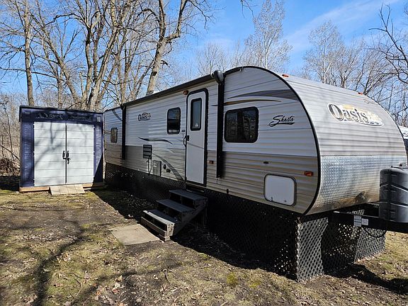 Affordable Lake living!! Come to the scenic Devils Lake! Enjoy the lake life in this beautiful RV model home located in the Kamp Kappy Association. You will own the deeded lot and the 2014 Oasis 34' RV in excellent condition. Completely set up and ready to move in, has 1 slide out for a spacious feel, ample storage. This will sleep 10, 1 bedroom with a queen size bed, and a bunk bedroom that sleeps 4 and pull out couches. Enjoy entertaining under the 17' awning, included is a 8'x8' storage shed. Devils Lake is a 233 acre lake that has excellent fishing and swimming on the hard bottom beach area, 1350 ft of shared lake frontage. Shared amenities include: Marina with personal boat slip, fish cleaning shed, water, sewer, garbage pickup, extra shower/bath facility, picnic area, lawn care and dock maintenance, all included in the $71.00 per month association fee. Located just 15 minutes from Alexandria and only 5 minutes from I-94! Come relax and enjoy!