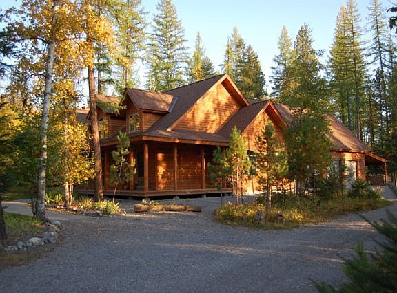 Tucked in private forested setting is this woodsy Montana home. Cross the classic covered front porch into the living room w/ rock hearth fireplace. Country kitchen opens to dining area with a good sized office adjacent. Look out the backyard to pond & water feature. The main floor is finished with lg master suite & bath w/ soaking tub, then an addtnl 2 guest bedrooms & guest bath. Upstairs thru access from the garage is a Family Room with attached convenient half bath. Lots of room to store your vehicles & Montana toys in the triple garage and attached carport. Enjoy the outdoor setting from the patio at pond's edge and grow your garden in the fenced plot. To south is shared 2.9 acres with Johnson Crk to explore. All this within about 10 minutes to the village of Bigfork.