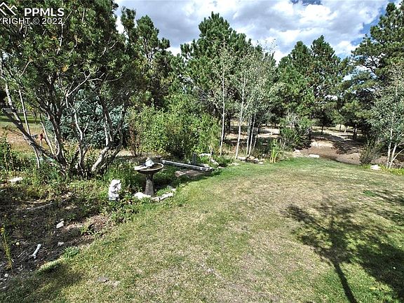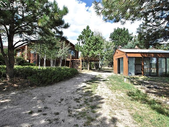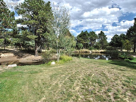 WONDERFUL PRIVATE!! 8 acre Black Forest property with pond and loads of trees and shrubs. The huge deck overlooks a rear yard to the pond and greenhouse that's heated with water. This walkout rancher is ready for a new owner. Kitchen features quartz countertops, stainless steel appliances and oak cabinets. The formal living and dining room form a nice great room concept as does the walkout finished basement. Private and spacious master suite with big walk in closet plus main level laundry. 2 more huge bedrooms in the basement and lots of bonus storage. Domestic well and fully fenced. Close to Shriever Air Force Base and Peterson Air Force Base