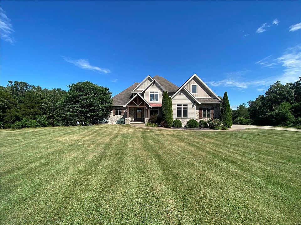 This remarkable home in the country could not be more perfect! Once you drive down the paved, private drive you are greeted with a breathtaking custom home with 3 car attached garage surrounded with mature trees and 30 acres m/l of what could be your own piece of paradise. The main level offers plenty of open living space, a gorgeous kitchen with granite countertops, custom cabinetry, large walk-in pantry and stainless steel appliances. The large master suite is on the main level complete with 2 walk in closets, a bathroom with a double walk-in shower, separate vanities, and a jetted tub. Upstairs features 3 bedrooms with a Jack-n-Jill bath with 2 vanities and stools and one tub/shower unit. The lower walk-out level features a large family/rec. room with lots of windows, a 5th bedroom and full bath. There is also a nice sized unfinished area for storage, plus an oversized John Deere garage.