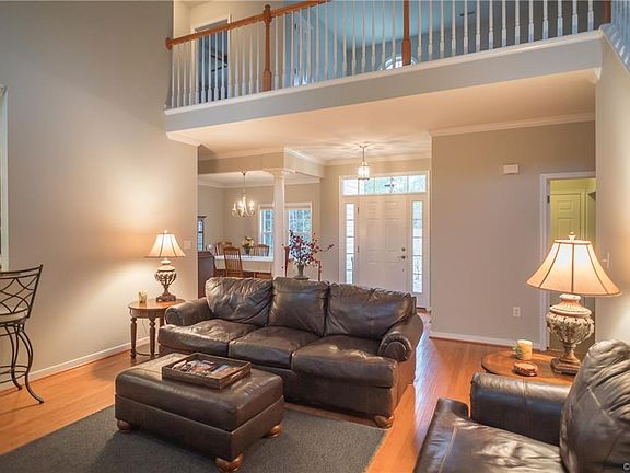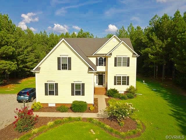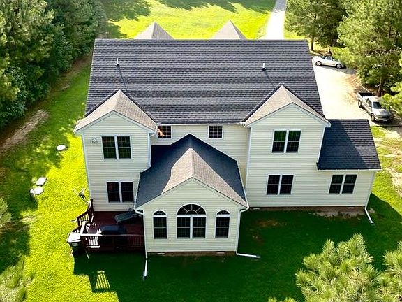 Private park-like 5.42 acres! Immaculate 4 bedroom Two Story Transitional with vinyl siding exterior, & side entry 2 car garage. Two MASTER bedrooms, one on the first floor, and one on the 2nd floor. The first floor master bedroom features carpet, separate living room/office, master bath with garden tub, stand up shower, & large walk-in closet. 9' ceilings and wood floors with column on the first floor. Formal Dining room, open 2 story Great room with see through gas log fireplace, shared with bright Sun Room. Sun room has 3 palladium windows, vaulted ceiling, & sliding glass doors leading to deck. Open kitchen features granite counter tops, beautiful cabinets, breakfast nook & breakfast bar, & recessed lighting. Half bath and laundry room is conveniently located off hallway leading to the 2 car garage. The 2nd floor features the 2nd master bedroom with with walk-in closet, master bath with garden tub, & stand up shower. Also, 3rd & 4th bedrooms, & large open loft area overlooks the Great room on the first floor. House has 2 zone heat pump, & a total of 3.5 baths!