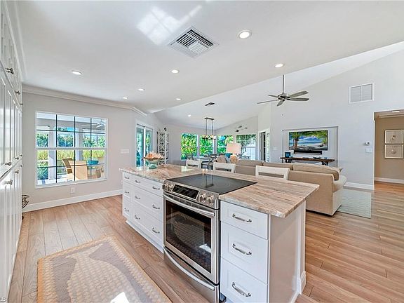 V.2790 - Incredible views and sunsets in this 3 bedroom 2 bath villa. Double lake and fairway views seem to go on forever. The 3 open sides of the spacious lanai have you feeling surrounded by nature. The open great room has tons of windows giving you the wow view from the second you walk through the front doors. Open great room with gorgeous flooring, all new cabinetry and large center island. The kitchen has upgraded granite, appliances and soft closing cabinets and draws. The colors blend masterfully giving a coastal chic feel with warm undertones, making this rival all new construction. Designer finishes throughout create a delightful setting. The master suite is serene and peaceful with all new bath, flooring and designer touches. The guest bath is all remodeled and the laundry has extra cabinetry and new washer and dryer. The 3rd bedroom has a separate terrace and double doors off the great room. All new hurricane impact windows and doors give you peace of mind too. The location is fabulous, close to beach, Mercato, fine dining and wonderful shopping. It doesn't get better than this.