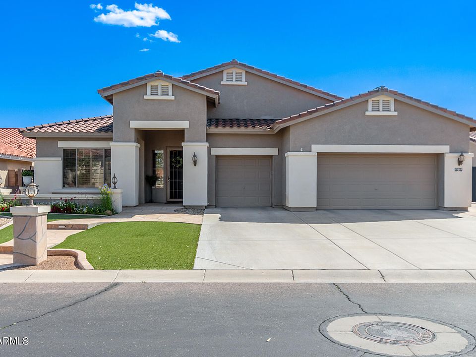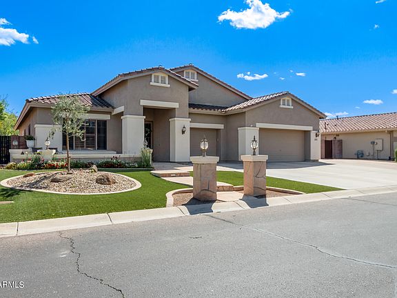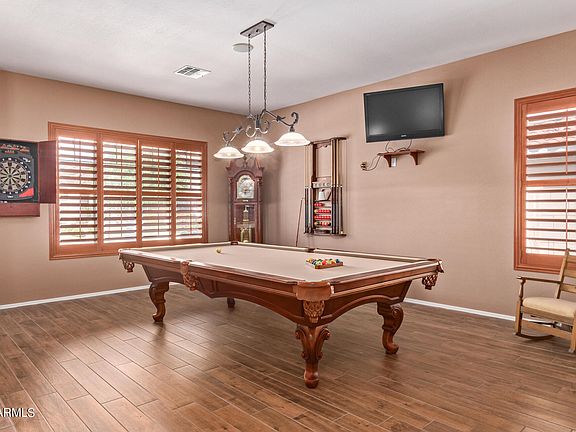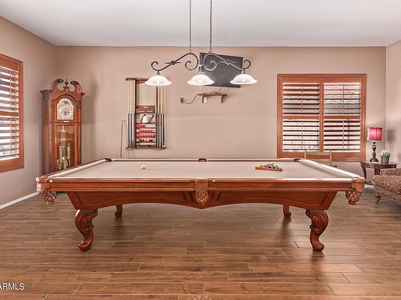 Experience the ultimate luxury living in Litchfield Park with this breathtaking home.This beautifully designed 4 bedroom, 3 bath home boasts 13,996 sqft lot in a private gated community. Adorned with elegant plantation shutters on all windows, the home offers natural lighting while maintaining privacy. The front yard is beautifully landscaped with low-maintenance artificial turf. Inside, cozy up by the gas fireplace or entertain guests with the surround sound system. The custom extended patio is perfect for outdoor gatherings and features a custom-built BBQ island for the ultimate chef. An aluminum awning adds a touch of elegance to the outdoor space. The executive kitchen is equipped with top-of-the-line appliances including dual ovens and an in-cabinet gas stove.