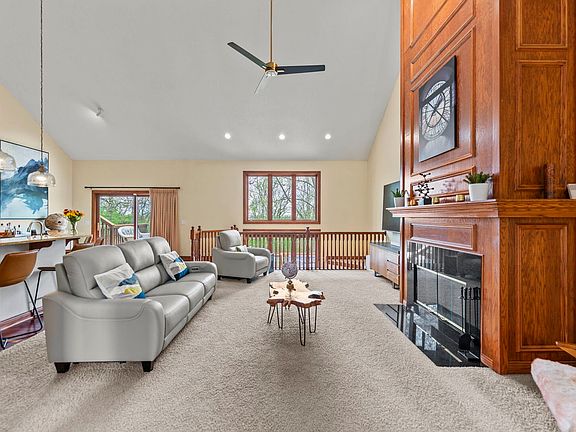 Nestled in Roscoe's Promontory Ridge, this stunning custom ranch home boasts a gorgeous brick and stone front, distinguished by unique architectural details. Spanning over 4800 square feet of finished space, the sprawling split bedroom ranch offers an expansive layout. The heart of the home is the open great room, with cathedral ceilings, and oversized windows flood the space with natural light. A custom fireplace serves as a cozy focal point. The kitchen features a new dishwasher and microwave, an island with a bar for extra seating, and a generous table area with oversized sliders that open to a multi-level deck. The formal dining room offers an elegant space for hosting. Additionally, the main floor office, enclosed with French doors, provides a quiet retreat for work or study. With three spacious bedrooms, including a luxurious master suite complete with a walk-in closet and a spa-like bath, and separate access to the deck and backyard. Convenient main floor laundry leads to the oversized 3.5 car finished garage equipped with heater & EV charging outlet plus ample room for workbenches, gym area, & additional storage. A custom finished lower level was designed with entertainment in mind. This space includes a rec room, game room, media area, bar, and a bonus room currently used as a 4th bedroom, as well as a full bath. With a walk-out design, the basement seamlessly connects to the tranquil backyard, which is a haven of privacy, nature, and wildlife. The multi-level deck, featuring a hot tub and ample space for outdoor entertaining, overlooks the .69-acre lot, providing the perfect backdrop for enjoying the serene surroundings. The home's location offers great convenience to I90, shopping, and more, while being part of the sought after Prairie Hill/Hononegah school district.