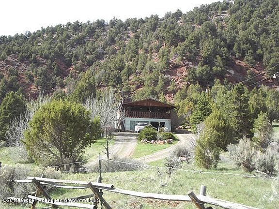 Very nice tree covered property, backed up to hills and just across County Road 8 from the White River. In the heart of the White River Valley, close to great hunting and fishing. Half of the basement is a 2 car garage and half is a nice family room. The home has a big covered deck above the garage and decks on all three other sides. Living room has a wood burning fireplace. Great kitchen and dining room. 3 bedrooms. The master has a 3/4 bathroom and a sliding glass door opening onto a deck and the back yard of the home. A 972 square foot metal sided pole barn with a concrete floor and a wood burning stove. Lots of Pinon and Juniper trees, some sage, crab apples and pines. Also a small green house and a storage shed. Good water well and an underground automatic sprinkling system. Views.