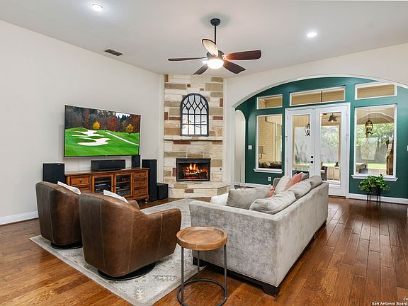 This stunning 1.5 story Chesmar Home sits on .3 acres of lush St. Augustine grass and is primely located in a gated community in the highly desired town of Helotes. The term evoked by this open floor plan home is EXTRA - extra tall ceilings, extra large kitchen island, extra storage (including walk-in attic space) , extra garage space, extra hot water heater, extra master closet organization, and extra cozy vibes with gaslog fireplaces both in and out doors, and more! The chef's dream open kitchen is the central hub as each of the four downstairs bedrooms are consciously appointed in the corners of the home, offering direct personal entry points and direct bathroom access from each. The upper half story offers a one room flex space accompanied by a full bath. Enjoy the outdoors year round on the beautifully designed screened patio, or venture onto the private composite deck perfect for grilling and outdoor dining. With the intimacy of a small town but all the city conveniences only minutes away, this location offers easy access to loop 1604. IH10, 151, Medical Center and La Cantera, not to mention being a stone's throw from Hwy. 16 where one can chase a beautiful Texas sunset into the Hill Country. Northside ISD schools include Helotes Elementary, Garcia Middle School, and O'Connor High School.Open House 10/12 & 10/13 11am-2pm