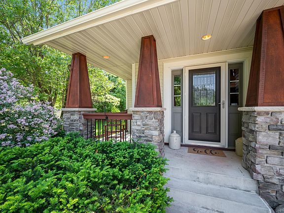 Beautiful Craftsman 2 story located on a quiet street within the Autumn Ridge neighborhood. Backs up to a heavily wooded nature reserve which can be enjoyed from a generous sized multi-level deck. Upon walking through the front door, you will appreciate the architectural touches including arched entries, pillars, skylights, hickory flooring and built-in bookcases adjacent to the stone gas fireplace. Mahogany stained woodwork, cabinetry, and craftsman style doors are throughout the home. Upstairs are 3 generous sized bedrooms and a large loft. Attached to the primary bedroom is a private bathroom with a glass block shower and jetted tub. There are 2 generous walk-in closets along the hallway that leads to the large sunlit bonus room. An oversized insulated three car garage includes a work area and ample storage. The landscape includes a relaxing water feature and in-ground sprinklers. The roof and siding were redone in 2022. Zoned heat and A/C for your comfort. Welcome home!