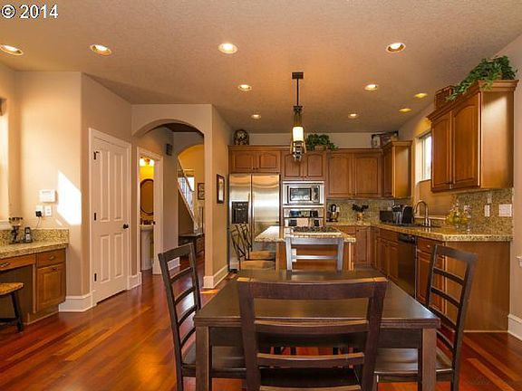 HOUSE HUNTERS featured home--they chose this one! This great 4 bedroom/2.5 baths w/ bonus room is an Earth Advantage home. Kitchen has cook island, slab & tiled granite & Brazilian cherry hardwoods. All new carpets & bonus room flooring! Master suite w/ vaulted ceiling & soaking tub. Quiet & serene--landscaped & fenced back yard w/ expansive back patio. Add'l covered parking. A/C! Close to parks.