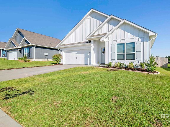 **ASSUMABLE FHA LOAN at 4.99% interest rate** Premier Lot in Fairhope Falls! Discover this beautiful well loved 4-bedroom, 2-bath home featuring 1,884 sq ft of luxurious living space. Enjoy luxury vinyl plank flooring throughout, an open kitchen with designer-painted cabinetry, soft-close doors, and granite countertops. The kitchen comes equipped with stainless steel appliances, including a dishwasher, microwave, refrigerator, and stove. The spacious primary suite offers a serene retreat with a separate shower, soaking tub, and large walk-in closet. This energy-efficient home includes thermal doors, Energy Star-rated double-pane windows, and a 14 SEER Carrier heat pump. Relax on the extended covered back patio with picturesque views of farmland and trees—perfect for spotting horses and riders. Conveniently located off Hwy 104, you're just minutes from downtown Fairhope, shopping, restaurants, and award-winning schools, with easy access to Hwy 181 and stunning Gulf beaches. Community amenities feature two pools, a playground, hiking/biking trails, kayak launch areas, and lakes. Built gold fortified, this home may save you on annual homeowners insurance. Buyer to verify all information during due diligence.