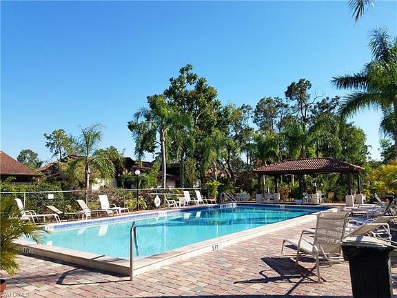 Pinebrook Woods is conveniently located in a gated community next to Bell Tower Shops. You can walk to shops, the movie theater, and restaurants. This spacious villa offers 2 bedrooms with walk-in closets, master closet has built-in shoe shelves, 2 full baths, great room with vaulted ceilings, built-in cabinets in dining area, beautiful upgraded white kitchen cabinets with pullouts, new microwave, indoor laundry room with utility sink and a very large private backyard. The enclosed lanai has operable windows and motorized hurricane shutters. There's a community pool for your enjoyment and relaxation. Also, residents have 2 convenient options for gate entry access, one from Daniels Pkwy and the other from Us 41 via Big Pine Way.
