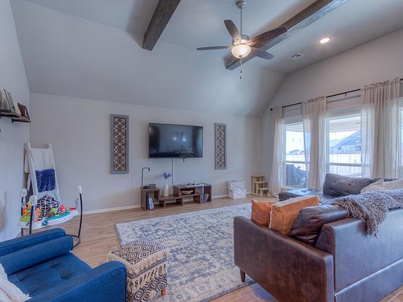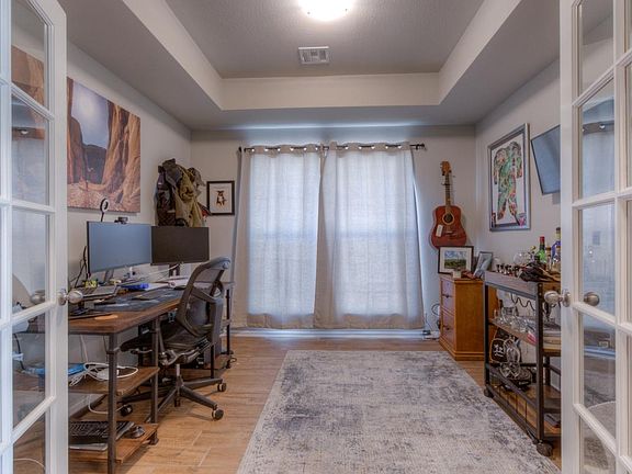 Spacious one level open concept. Split bedroom floor plan - 4 beds, plus office, 3 full baths. Wood plank tile flooring throughout living spaces, carpet in bedrooms. Storage cubby at entry. Granite countertops & stainless appliances in kitchen. Refrigerator stays! Vaulted/beamed ceiling in living room. Master bedroom with private bath, double sinks, walk-in shower. French doors to office. Covered back patio w/ceiling fan overlooks fenced back yard. Pet Restrictions. NO showings until May 1.