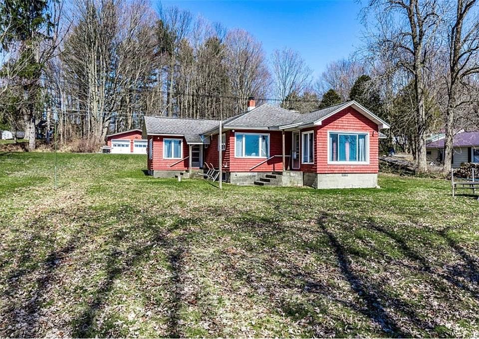 Almost 90 feet of water frontage on over an acre on Oneida Lake! Need I say more? But I will.....this year round ranch home is much larger than it looks and is OPEN and bright with lake views from almost every room. Two bedrooms with two full baths but could easily be converted into more bedrooms. Envious lawn space on the lake front for all your lake activities and parties. Oversized two car detached garage across the street which could be its own building lot if you are wanting more. 2020-10-16