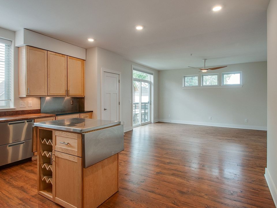 This second floor flat is part of a twenty-five unit CoHousing Community with a shared common house. Know your neighbors, be part of a community, and have your own condo. This 2 bedroom, 2 bathroom condo has an open concept living/kitchen area with a spacious master bedroom. Light and bright with lots of windows and two balconies! Tons of upgrades including an extended kitchen, walk-in shower, and kitchen island(with wine shelving). Steps away from top Germantown restaurants and shops on 5th ave