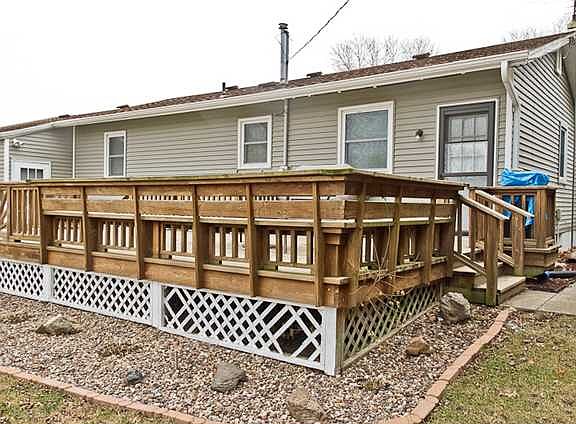 Well cared for ranch home that has been lovingly updated. Located across the street from an elementary school and rec center. This home sits on almost 2/3 of an acre. Updates include roof in 2009, kitchen in 2012 with stainless steel, windows in 2011, siding in 2012, lower level in 2007, seamless gutters in 2009, huge wood deck and two exterior sheds for storage. 4 car attached tandem garage. There is an additional open grass lot (unimproved parcel) that runs directly behind the property line of home to 8th Street and along Pattee Street that is being sold along with the home. (Additional .21 acres for a total of .58 acres). Taxes for lot are $44/yr for 2012-2013. USDA financing available with 100% loan.