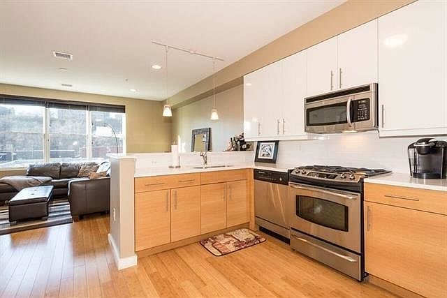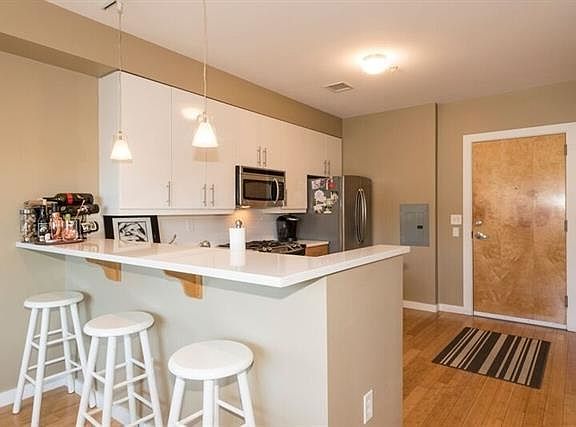 Large one bedroom condominium located in Upper Grand - hardwood floors throughout, open kitchen concept, bright and sunny - west facing. Unit features - central air, stainless steel appliances, washer dryer in unit, garage parking. Building has common outdoor space on the 2nd floor + small gym. Small pets ok! Located across from the park, close to local coffee shop & farmers market, short 2 blocks away from Trader Joes!