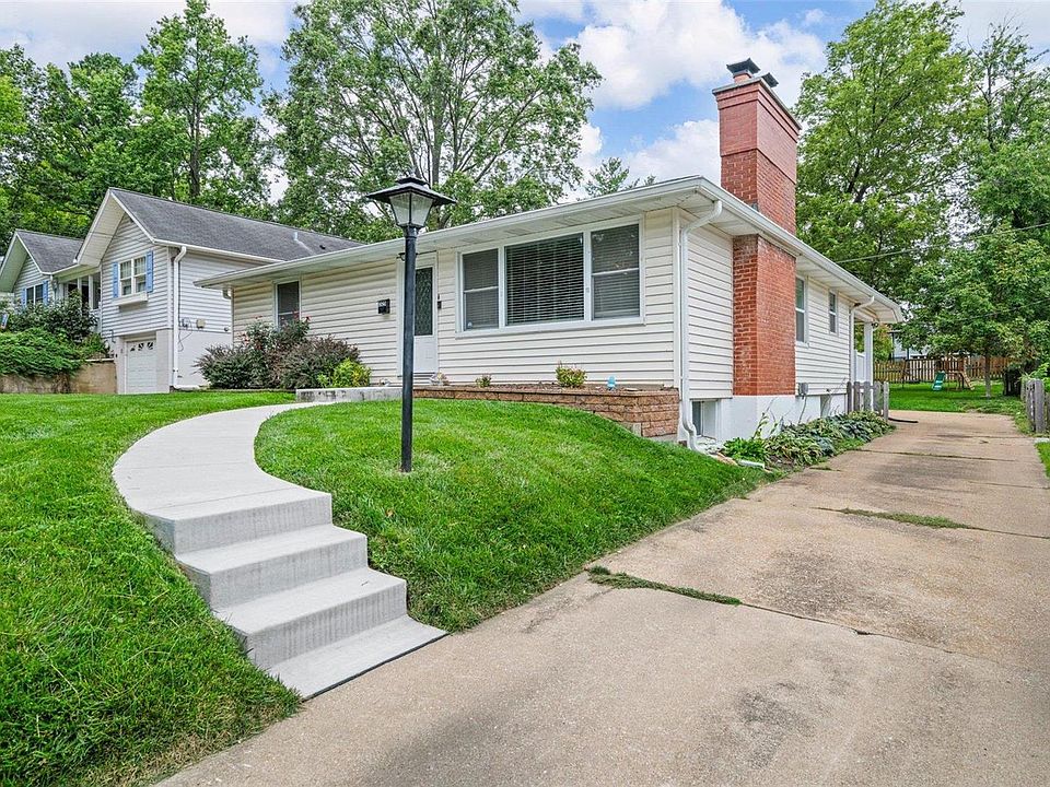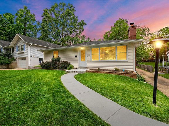 RARE OPPORTUNITY to make this STUNNING 4 BDRM, 3 BTH ranch w/2400+sq ft in WEBSTER GROVES school district YOURS! Gorgeous home sits on a HUGE, level lot w/stamped patio looking to NEW retaining wall & leveled out yard (2024) & new back fence. Exterior also boasts side entry 2 car garage, covered 1 car carport, NEWER roof (2018) & covered porch in front & back. Jaw dropping open floor plan interior starts with spacious living rm w/stone WB fireplace & leads to updated kitchen including breakfast bar, granite countertops, custom cabinets w/crown molding, tile backsplash & SS appliances including gas stovetop. Sep formal dining rm area surrounded by windows & TONS of natural light. Sprawling main fl primary suite w/updated bth includes double sink vanity & walk in shower. 2 add'l spacious bdrms & full bth on main. Updated partially finished walk up lower level boasts new flooring throughout, family rm, rec rm w/wet bar, new exterior door, 4th bdrm & updated full bth. RARE GEM, MUST SEE!