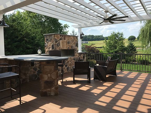 Amazing craftsmanship throughout the house - cherry floors, plaster-coated walls, 10 foot ceilings with Mediterranean texturing , custom cabinets, high end professional appliances, beautiful landscaping, lots of storage closets, 2000+ sqft walkout basement with high ceilings, and so much more. Added (huge 740 sqft) deck is a second vacation spot that can host large parties with ease - built-in professional grill, fireplace, pergola, stone columns and walls, high-end synthetic decking.