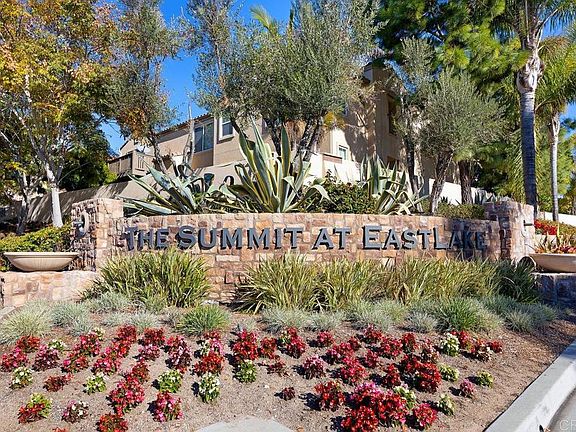 Welcome to this move-in ready townhome at The Summit in Eastlake. Step into an open floorplan featuring beautiful laminate flooring that flows throughout the main living areas. The white kitchen cabinets, complemented by sleek stainless steel appliances, create a modern and inviting space for cooking and entertaining. Enjoy your morning coffee or unwind in the evening on the large private balcony. Main Floor (Second Floor): One bedroom and a full bathroom, ideal for guests or a home office. Third Floor: Two additional bedrooms, each with its own private en-suite bathroom, providing comfort and convenience for family members or roommates. The attached two-car tandem garage provides ample parking and includes extra storage space. Additional features include a storage closet and a private patio at the front entrance, perfect for enjoying the fresh air. The community offers an array of amenities to elevate your lifestyle. Sparkling pool and relaxing spa Playgrounds for children. BBQ areas for outdoor gatherings. Exercise room and clubhouse for fitness and socializing. This home truly has it all—an exceptional location, stylish interiors, and access to top-notch amenities. Perfectly located near award-winning schools, Otay Ranch Mall, dining, and with easy freeway access! This home offers the perfect balance of comfort, style, and convenience. Don’t miss this incredible opportunity to own a home in such a sought-after community!