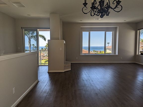 This ocean facing two-story home has stunning ocean views! High ceilings throughout and vinyl plank floors, the first floor features two bedrooms, guest bathroom, and a spacious laundry room. Upstairs you will find ocean views from every room. The kitchen, living, and dining rooms are open concept with high ceilings. The living room has a beautiful fireplace, ocean view balcony, and access to the backyard, which backs up to the foothills offering ample privacy. The primary bedroom has a lovely ensuite bath with arched doorways, dual sinks, and walk-in closet. You also get to enjoy those beautiful coastal sunsets from the balcony! Attached double garage. Soft water system (tenant maintains). Gardener provided. One year lease. Shown by appointment. Superior Property Management Services DRE #02100661 Owner provides monthly landscaping service. Tenants responsible for all utilities.