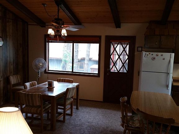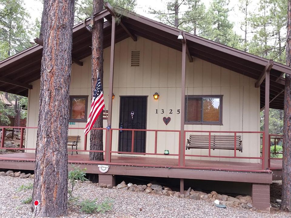 Quaint, well cared for cabin in the popular part of the neighborhood known at the ''''animal district'''' of Munds Park. This cabin has a family room, dining room, kitchen combo accented by the corner fireplace. Enjoy the large covered front deck which looks out on plenty of parking for guests. The open lot across the street provides for a nice view while sitting on the swing. This cabin comes completely ''''turn-key'''' with furnishings and fully stocked kitchen. Come take a break from the heat and enjoy your own ''''Paradise in the Pines'''' immediately.