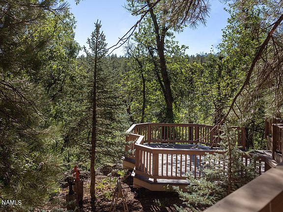 Extraordinary Views of Munds Canyon from this oversized over 1/2 acre property. Tucked into a corner of Pinewood where Munds Canyon meets Coconino National Forest! Panoramic views from the vast wrap-around decks. There is plenty of room for RV parking and a garage. Coconino County Assessor has this classified as a single-family home. A primary bedroom suite, great room, and an additional bedroom have been added to make this a total of four bedrooms and three full baths. There is a lot of potential in this fantastic property. Comes furnished with a One Year Home Warranty.