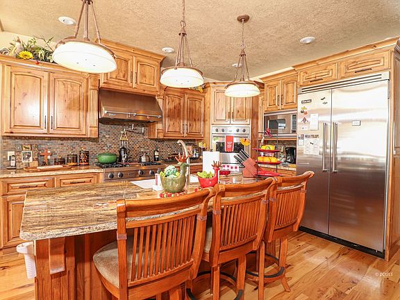 Duck Creek Pines rich wood exterior home provides the distinctive differences in Southern Utah Mountain Living. 5 bed, 3 bath home with quality features including hickory wood flooring, rough edge granite counters, stainless Viking appliances, massive elk antler chandelier, solid wood doors, high vaulted ceilings, full-service wet bar with seating, and three living areas. The home has a flowing design that accommodates large gatherings. The main floor living area has a stunning rocked fireplace, spacious chef's kitchen, dining, 3/4 bath, massive parlor, and guest bedroom. The upper level is dedicated entirely to the master bedroom that is fully equipped with comforts to soothe after a day of Mountain fun including a jetted tub, walk-in closet, and balcony. The lower level features a comfortable living room with patio access, three bedrooms, a full bath, dedicated laundry room, & attached oversized 2 stall garage. Located on the corner of Henry & Mossberg the .64 acre parcel is level populated with tall Ponderosa Pine and two custom firepit areas. ATV or snowmobile from property to some of the finest landscape in Southwest US.