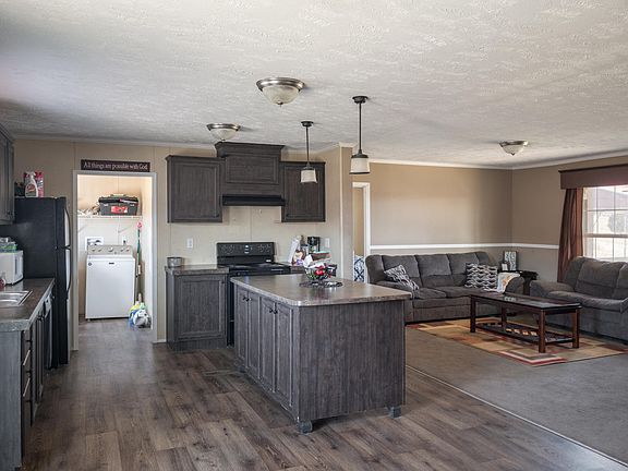 Beautiful 28x76 Clayton manufactured home situated on 15.6 acres. The home is a 4 bedroom, 2 full bath, with living room, family room, and a home theater/bonus room that could be used as a 5th bedroom. The large open concept kitchen and dining area lead to a spacious back deck that over looks the fenced in pasture that includes 2 fresh water springs and is backed by wooded acreage with a creek running along the entire back property line.