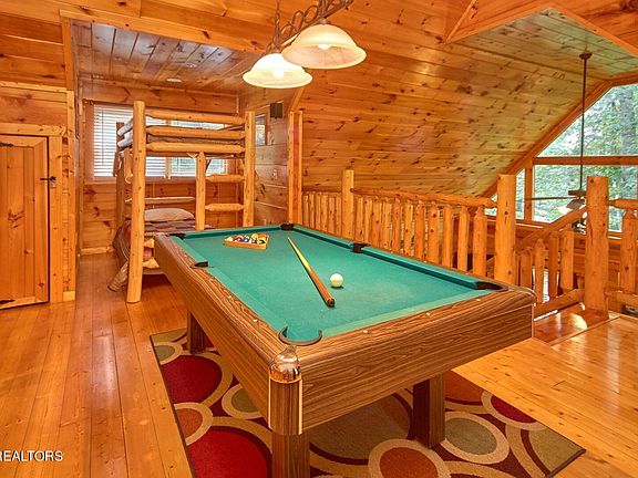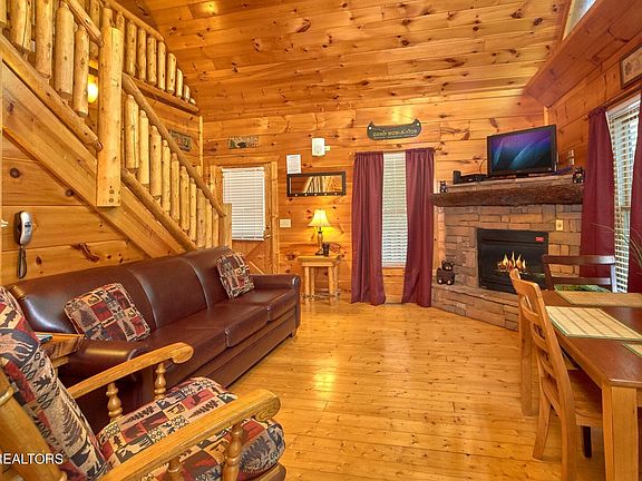 This Charming Cabin nestled in desirable Sky Harbor is a fully furnished, turnkey vacation rental with an established rental history. This mountain getaway features a 2 story great room with a cozy stone fireplace and beautiful tall windows framing the peaceful gorgeous views. The spacious primary suite is located on the main level with its custom king log bed and a relaxing in-room jacuzzi. The half bathroom and the laundry area also located on the main level for added convenience. Upstairs you will find a large loft/game room with bunk beds perfect for guests and the 2nd full bathroom. You and your guests will enjoy relaxing on the private covered deck with a hot tub. All this and only minutes from all that Pigeon Forge, Gatlinburg, and The Great Smoky Mountain National Park has to offer.