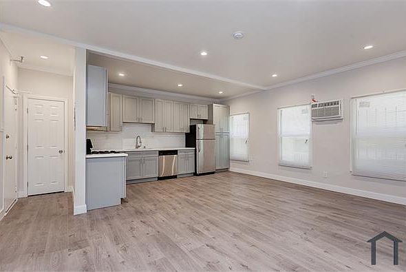 Spacious kitchen cabinetsStainless steel appliancesRecessed led lightsMirrored closet