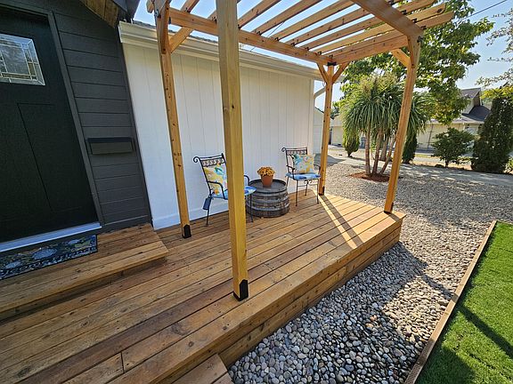 BACK ON MARKET; NO FAULT OF HOME. Adorable MOVE-IN- READY home in NW Grants Pass on a quiet street. 2 bedroom, 1 bath feels spacious & very comfortable with a great layout. Light & bright. Lots of storage. Completely updated with new flooring, doors, kitchen including cabinets, countertops, island, & stainless Whirlpool appliances. New bathroom with tiled shower, double vanity & freestanding tub with a gorgeous chandelier. LVP throughout home. New heat pump, ducting, all new plumbing & water heater, & electrical brought up to today's codes & permitted. Can lights, beautiful fixtures, vinyl windows, & new 2-in blinds throughout. New roof, gutters, landscaped front yard, sprinklers front & back, front cedar deck, fully fenced backyard. Oversized single garage with 50 AMP svc, workbench & automatic door opener. Short walk to Club NW, Weekend Beer Co., restaurants, dog park & lots more! All information deemed reliablaree but not guaranteed. Buyer to do own due diligence on property and u