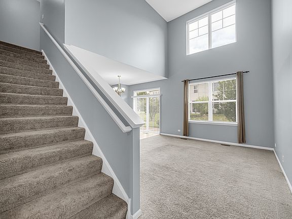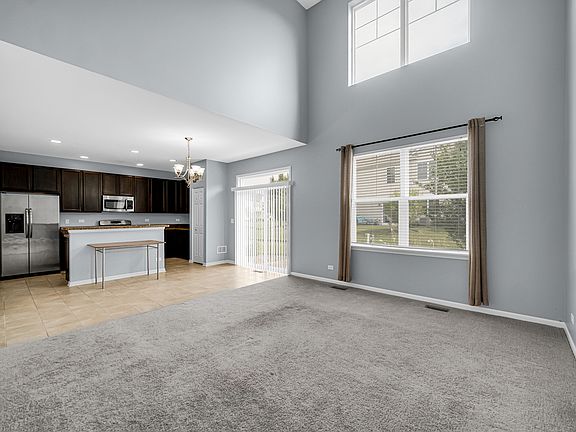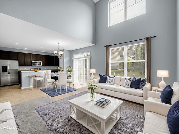 As you enter, you'll be welcomed by a spacious foyer featuring ceramic tile flooring, which leads into a stunning 2-story living room with an abundance of natural light streaming through the large windows. The kitchen is a chef's dream, equipped with all stainless steel appliances, 42" tall maple espresso cabinets, and a central island with a breakfast bar, perfectly separating it from the cozy 14x9 dining area. The expansive master bedroom includes an en-suite bathroom with a dual vanity and a walk-in closet, offering both comfort and convenience. The second floor also features two generously sized bedrooms, a full bathroom, and a conveniently located laundry room. Step outside to the patio off the kitchen/dining area, perfect for entertaining, and enjoy the convenience of a two-car garage. Take full advantage of the wonderful amenities offered by the Cambridge Lakes Community, including a Community Center, fitness classes, a well-equipped gym, a basketball court, an outdoor pool, a splash pad, bike/walking trails, baseball fields, a charter school, parks, and much more.