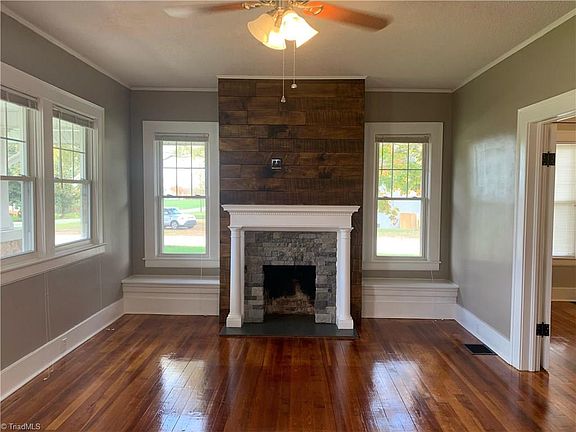 Convenient to Pilot Mountain this spacious 1928 home is one you have to see. The original pine floors are in great condition. Updated kitchen features stainless appliances opens into large dining room. Granite and vessel sink in the downstairs bathroom. New carpet in downstairs bedrooms. Half wrap front porch and screened rear porch. Recent heat pump and roof. Basement is dry and clean. Three space carport with workshop, additional outbuilding and ample garden space. Updated utilities.