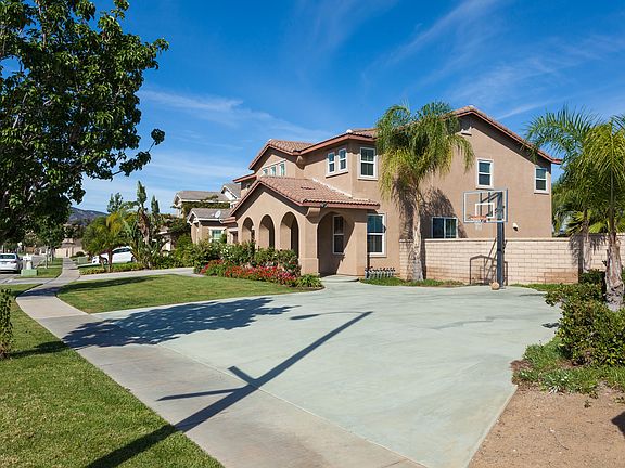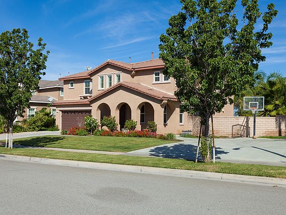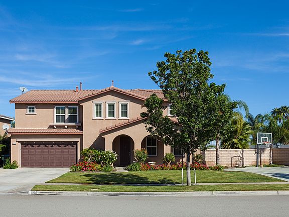 1325 Peridot Drive features 3,000 square feet of living space, 8,712 square foot lot, 2 car garage, 5 spacious bedrooms and 3.5 bathrooms with one of those bedrooms & bathrooms are located in the first floor. This home boast an open concept for entertainment and a separate formal living & dining rooms for a more private occasions. The stained wood railings with iron balusters is one of the first things you?ll notice as you enter into this home followed by the high ceilings & custom crown moldings. There?s no shortage of wonderful Natural lighting that shines into the home from the large dual pane windows with upgraded Plantation Shutters & Wood Blind. Make your way to the kitchen which features granite counter tops, huge kitchen island, a separate dining area, an impressive amount of cabinet space and a separate walk-in pantry. The adjacent family room features a built-in entertainment center with a beautifully laid engineered laminate flooring and upgraded plantation shutters. The upstairs offers an open loft that overlooks the stairs and main entry level. The master bedroom offers a view of the city, one walk in closet, a separate mirrored closet, dual vanities and a relaxing large tub with a separate stand up shower. The third, fourth, and fifth bedrooms are just down the hall. All are very spacious with city and mountain views. The laundry room is located upstairs which makes it easy to wash and store clothes. The backyard features access to your very own barbecue island with a beautiful relaxing breeze that sways the palm trees side to side. The front yard offers a separate basketball court with colorful roses and seasonal flowers. Don?t miss out on this best located home close to shopping centers, parks, highly rated schools and freeway access to Orange County.