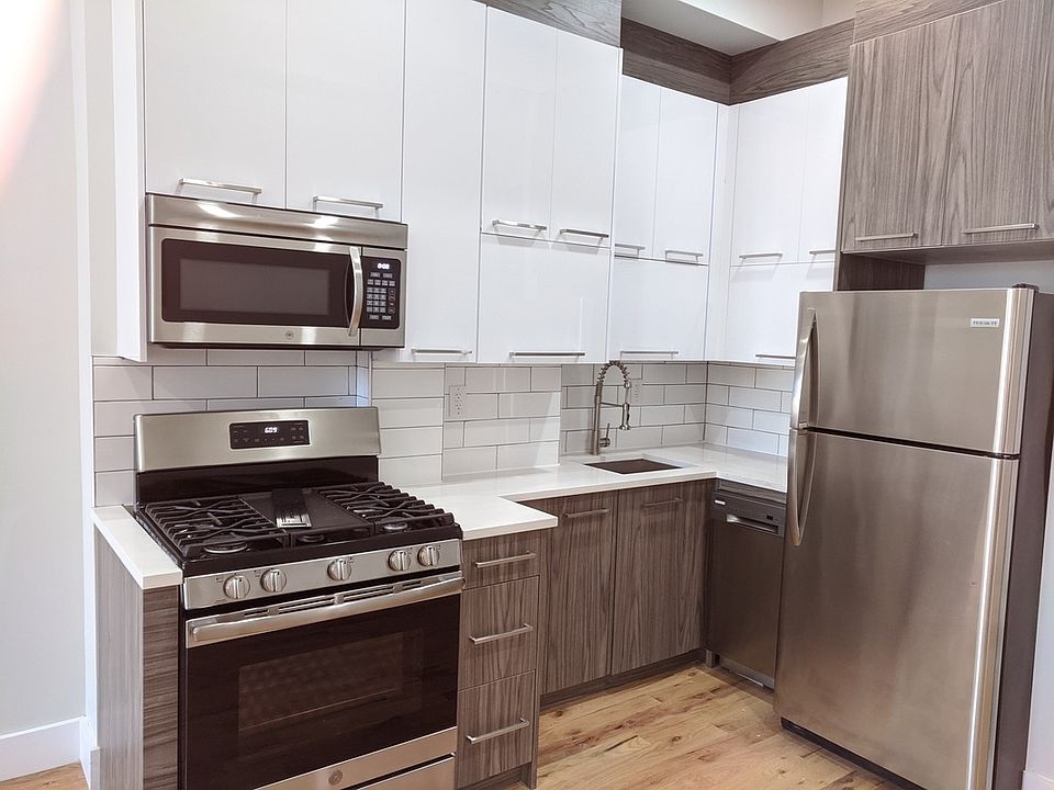 We offer virtual tours and can text a video of the apartment. We require combined annual income of 84k and 625 credit No broker's fee Brand new modern units Move in ready Very spacious and big bedroom Air conditioning and heating units included Laundry in basement Dishwasher and microwave included Roof deck access with city view Great location right near public transportation Lots of sunlight Easy and quick process 20 dollar application fee $2,095 x 2 for move in PETS ALLOWED