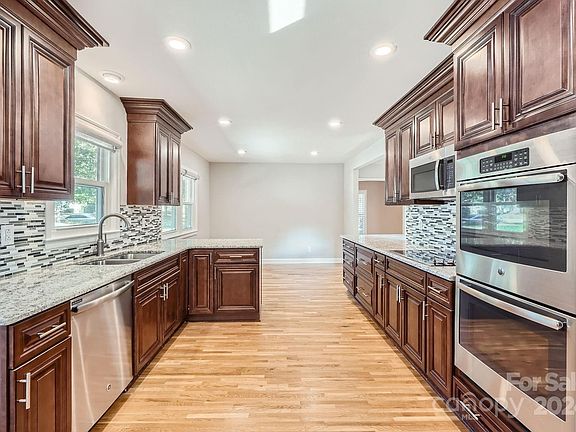 This move-in ready home in the sought-after Stonehaven neighborhood has been well-maintained and is located on a beautiful tree-lined, sidewalk street. Updated kitchen with double oven, granite counter tops, and stainless steel appliances. Plantation shutters and designer roller shades accentuate new windows installed in 2020. Fresh paint for all rooms and original hardwood floors throughout. Renovated bathrooms, including a dual-sink vanity with tiled, walk-in shower for the primary bedroom. Open kitchen includes breakfast nook and flows well into a spacious family room with gas fireplace. Flexibility to utilize additional rooms as office, formal dining, playroom, or other and great storage throughout, including attic. Backyard includes storage shed, paver patio, and raised flower/garden beds. Conveniently located between Uptown Charlotte and Downtown Matthews and close proximity to local and private schools, restaurants, shopping centers, supermarkets, and HWY 74.